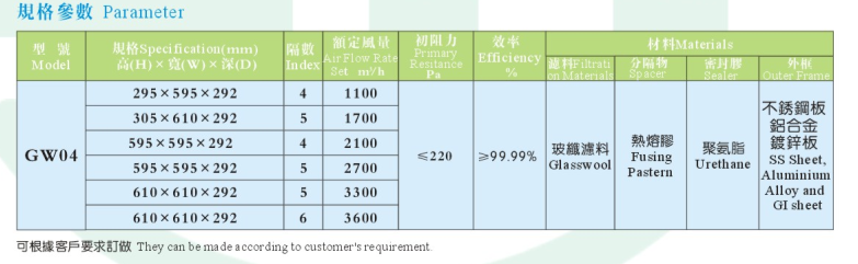W型/V型過濾器又稱組合式高效過濾器。組合式高效過濾器框架分:塑膠框、鍍鋅框、鋁框框、不銹鋼框,常用塑膠框的組合式高效過濾器。適用于研究和生產(chǎn)部門各種工藝要求在10萬級潔凈度以下使用(<0.5μm的塵埃粒子),由于本過濾器具有良好的濾菌性能,故尤其適用于制藥工業(yè)、生物實驗室、醫(yī)院手術室、食品工業(yè)、化妝品工業(yè)等。對于辦公室和賓館的空氣凈化亦有良好的效果。因此,對以上場合,本過濾器可作為末級過濾器使用。它可保證10萬級以上潔凈度要求。