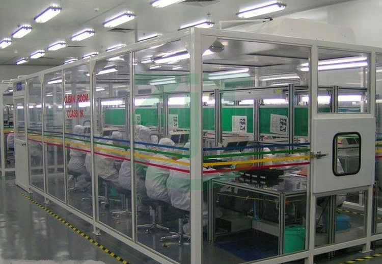 潔凈棚采用工業(yè)鋁材(或不銹鋼方通、鐵方通噴塑)作為框架,風(fēng)機(jī)濾網(wǎng)機(jī)組(FFU)送風(fēng),四周懸掛防靜電垂簾(或鋼化玻璃),其內(nèi)部?jī)艋?jí)別可達(dá)到100-10000級(jí)。適用于操作區(qū)內(nèi)局部?jī)艋?jí)別要求高的區(qū)域。